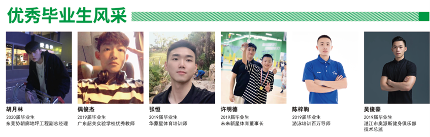 六、就业方向 学生毕业后可在体育文化娱乐公司、社区体育组织、体育场馆、体育培训公司、户外拓展公司、健身俱乐部等相关企事业单位从事体育赛事组织、体育场馆管理、体育活动策划、户外体育教官、体育教练等工作。