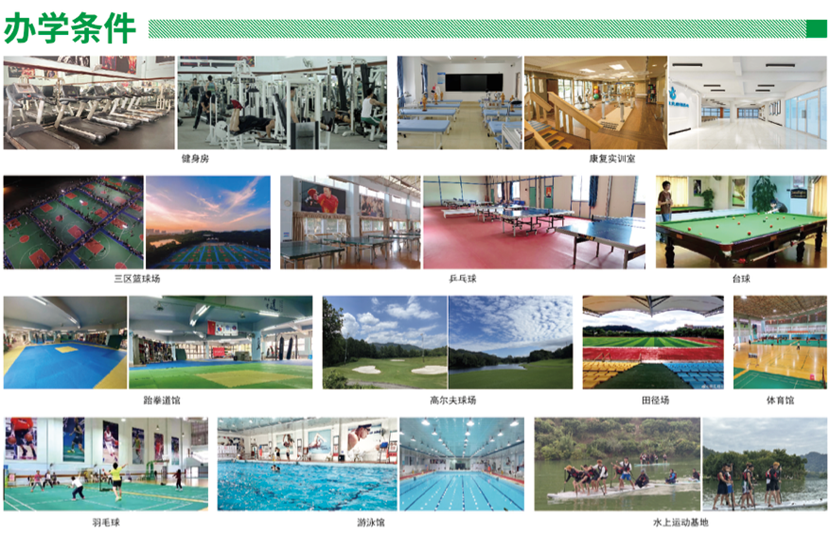 四、实训条件: 依托广州市从化区体育产业研究中心,建成融合体育赛事、户外体育等产业运营的实践场地,打造教学、培训、科研和技术服务等一体的产学研融合实训基地。