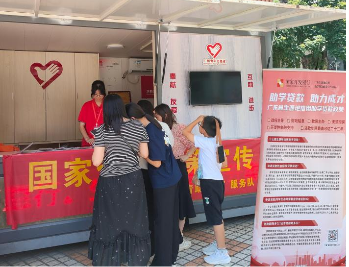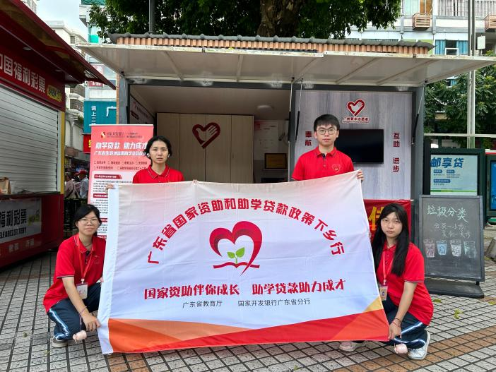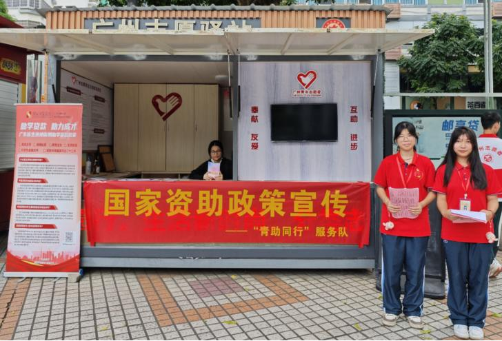 资助下乡行,助学暖民心,7月10至12日,学院 “青助同行”服务队继续深入开展国家资助和助学贷款政策的宣传工作。在街口街团工委、区青年志愿者协会支持下,队伍整装出发,在从化区新世纪广场人流密集区设立了资助政策咨询站点,站点摆放着国家资助政策宣传手册、助学贷款申请指南、“广东省生源地信用助学贷款政策”海报等,为群众提供便捷的站点。