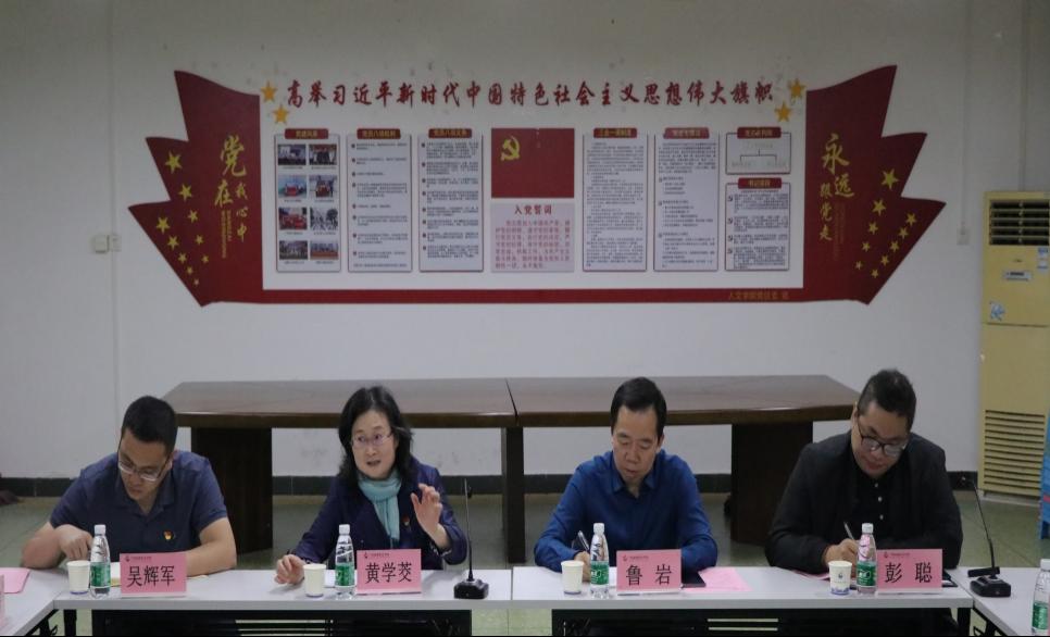 10月23日上午8:30,学校党委书记黄学茭、组织部部长吴辉军一行到人文学院开展党建调研指导工作。学校党委副书记兼人文学院院长鲁岩、党总支委员、组织员、各支部书记和全体辅导员参加会议。会议由党总支副书记彭聪主持。