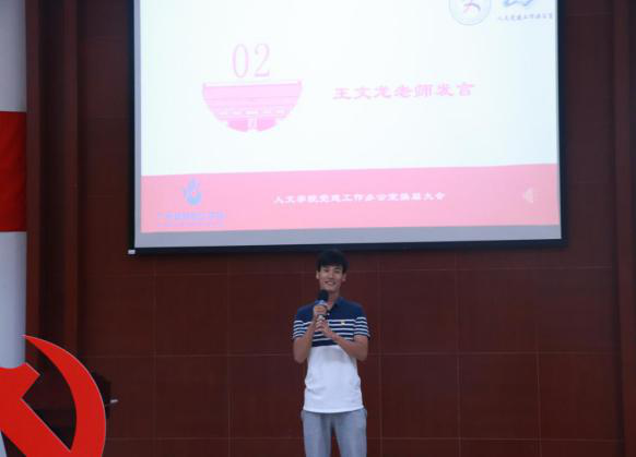 大会在庄严的《国际歌》中拉开序幕。首先王文龙老师上台发言,他对上一届学生干部的工作付出表示衷心感谢,同时对党建工作办公室吸收的新鲜血液表示热烈欢迎,希望新干事们能够继续发扬党建精神,能够在党建工作办公室发光发热。接着上一届干部陈敏婷发言,感谢老师的细心栽培和孜孜不倦的教诲,同时鼓励干事们在工作上要调整好心态,兼顾好学习与工作。随后新一届秘书长何羡怡上台发言,表示会循着师兄师姐的足迹,在秉承中创新,在创新中发展。接着干事们积极上台发言,他们纷纷表示一定会通过自己的努力去学习,做到学习工作两不误,起到先锋模范带头作用。接着由李艳霞和王文龙老师为上一届干部颁发聘书。最后李艳霞老师总结发言,首先感谢上一届干部们的真情付出,希望他们不论身处何地,都不要忘记自己的责任与担当。同时也希望新一届干部与干事积极向他们学习,做到自信自强,做好工作细节,要有明辨是非的能力和敢于直面问题的勇气。