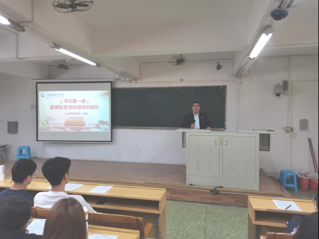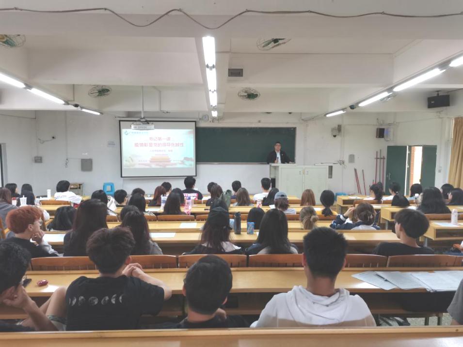 2020年是特殊的一年,疫情来势汹汹,人民的生命安全和身体健康都面临着严重的威胁,与此同时全国上下一盘棋抗击疫情,极大地彰显了疫情期间党的领导优越性。3月25日14:30,人文学院党总支副书记彭聪在人文艺术楼205阶梯课室为2020级新闻2班和3班讲授题为《疫情彰显党的领导优越性》思政第一课。