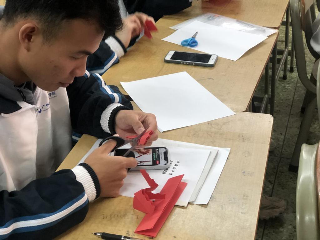 学生党员进行剪纸创作