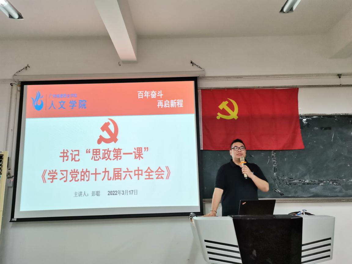 为了更好地学习贯彻习近平新时代中国特色社会主义思想和党的十九届六中全会精神,加强师生党员的政治素养及党史学习,人文学院党委于3月17日上午10:30在人文艺术楼513会议室开展书记、院长“思政第一课”,人文学院党委副书记、副院长彭聪为20学前教育1班学生讲授“思政第一课”。