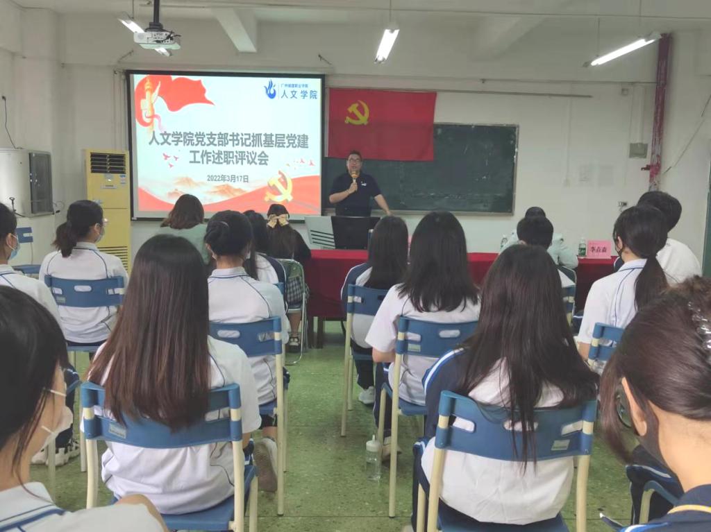 为认真贯彻落实新时代党的组织路线,推进全面从严治党纵深发展,不断加强党建的建设,持续推进基层党支部标准化、规范化、特色化建设,人文学院党委于3月17日上午10:00在人文艺术楼513会议室召开2021年度党支部书记抓基层党建工作述职评议会。人文学院党委副书记彭聪、教师党支部书记尚东玲、学生第一党支部书记刘颖诗、学生第二党支部书记李垚森以及各支部党员代表参加本次会议。会议由党委组织员李艳霞主持。