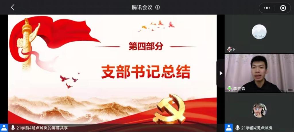 为了坚持理论武装在前,强化政治引领,学党史、悟思想、办实事、开新局,推动学习教育深入师生、深入基层、深入人心,响应国家安全防疫的号召。3月23日晚上7:30,人文学院学生第二党支部于线上召开三月专题组织生活会暨民主评议会,人文学院学生第二党支部书记李垚森以及全体学生党员参加本次会议,会议由学生党员林海容主持。