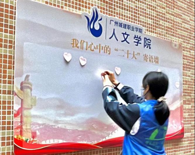 本次活动开始前,支部成员和楼管会成员认真学习党的二十大精神。充分认识党的二十大的重大意义,准确领会把握党的二十大精神的思想精髓和核心要义,推动习近平新时代中国特色社会主义思想和党的二十大精神入脑入心。在活动中,用便利贴写上对党的认识和在2035年自己想成为怎样一个人的心里话,结合所学专业,围绕党的二十大报告提出的2035年发展目标,展望未来,树立远大理想写下职教⻘年的寄语。现场活动还吸引了一批住在4栋学生公寓学生,大家纷纷来到寄语墙上写上自己的寄语,与自己的心里话合影发朋友圈。