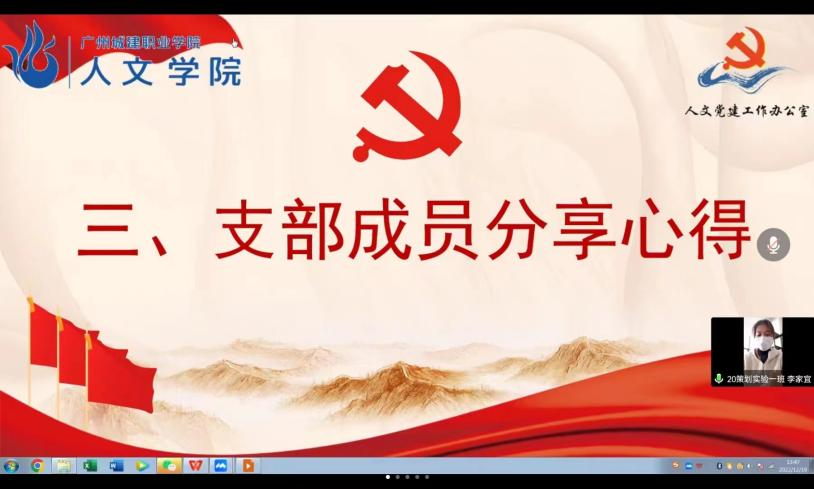 为深入学习贯彻党的二十大精神,12月19日中午,人文学院学生第二党支部在腾讯会议开展人文学院学生第二党支部十二月支部大会暨党日活动。人文学院学生第二党支部书记李垚森以及支部全体学生党员参加本次会议。会议由学院党建办公室实践部副部长吴香桔主持。