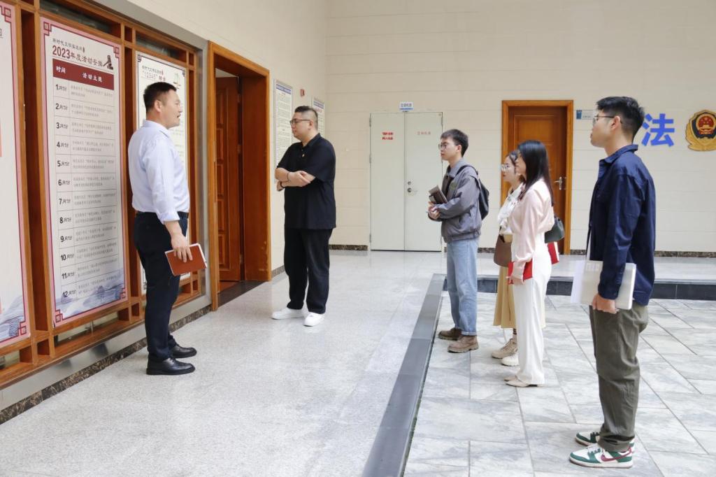 从化区人民法院党组成员、副院长江锦泉,机关党委专职副书记何智玲,团委书记郑伟成,团委副书记曾凡江以及新时代文明实践“扬善美”普法志愿服务队队长孙金热情接待了彭聪等一行。双方就“两院”党建工作经验展开交流,江锦泉副院长从党建工作方法、工作成效以及工作特色等方面介绍了从化人民法院党建工作情况,彭聪副书记也介绍了人文学院党委党建工作的方法和成效。接着,观看从化法院党建工作宣传视频,并由曾凡青带领大家参观从化区人民法院新时代文明实践所以及从化区人民法院法律志愿驿站。然后双方就党建共建项目进行合作洽谈,并确定进一步开展党建共建项目合作,共同开展高质量、高水平、重实效的党建特色活动。彭聪表示,希望通过党建共建,创新党建工作,健全党的基层组织体系,充分发挥党组织的战斗堡垒作用,扎实有效推进“两院”党员队伍的思想建设、组织建设、作风建设和制度建设,为党建工作高质量发展作出贡献。期间,彭聪一行还参观了法院的新时代文明驿实践驿站等。