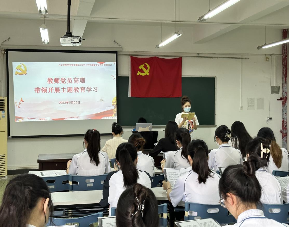 为了深入学习贯彻习近平新时代中国特色社会主义思想主题教育,人文学院学生第四党支部于2023年5月25日10:00在人文艺术楼513教室开展主题教育专题学习暨五月主题党日活动。人文学院学生第四党支部宣传委员郑妙英,组织委员董蕙,教师党员高珊以及全体预备党员参加活动,会议由党支部书记吴伟仪主持。