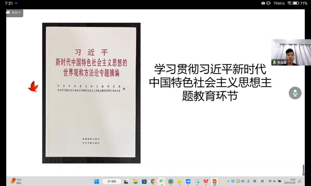 首先,李垚森书记带领团支书学习《习近平新时代中国特色社会主义思想的世界观和方法论专题摘编》。随后,李书记部署学院团组织关系转出工作,重点围绕如何使用智慧团建系统审批转出申请、本年度团省委关于团籍转出的相关文件要求进行解读,推动线上团籍转出工作高质量、高效率开展。最后,设置团支书工作心得讨论环节,就团支书在工作中遇到困难进行讨论并现场答疑。