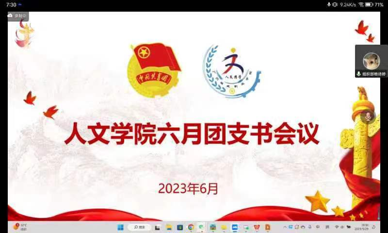 为更好学习贯彻习近平新时代中国特色社会主义思想主题教育,指导毕业班团支部有序完成毕业生团组织关系转接工作,人文学院团委于5月30日晚上7:30在腾讯会议召开六月团支书会议暨学习《习近平新时代中国特色社会主义思想的世界观和方法论专题摘编》活动。学院团委书记李垚森、团委组织部全体干部和全体毕业班团支书参加会议。会议由团委组织部杨诗婷同学主持。