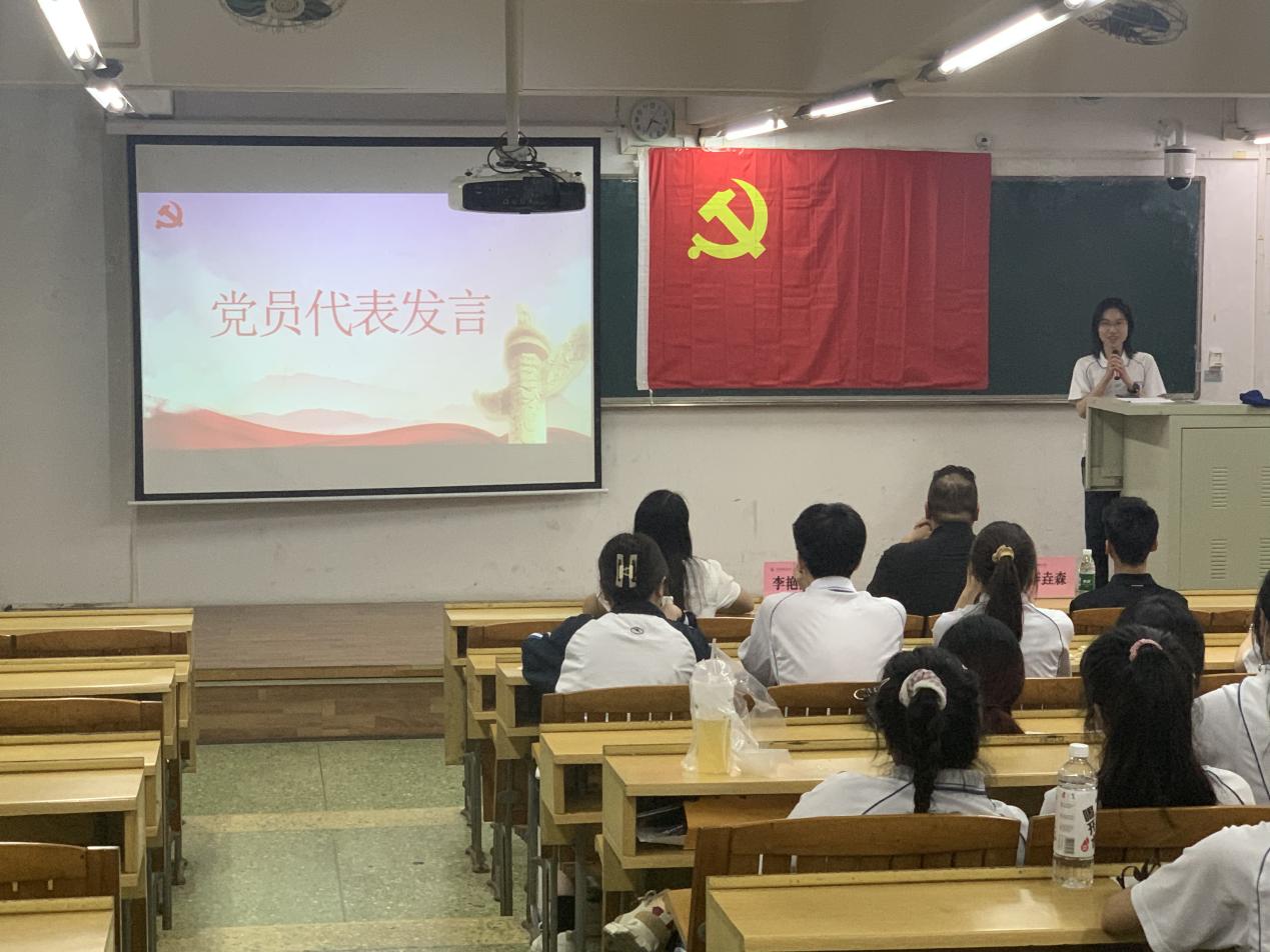 大会在庄严的国歌中拉开序幕。首先,彭聪副书记给大家讲授《“青春恰似火,革命正当时”——学习习近平总书记在中央政治局第五次集体学习时的重要讲话党课》。彭聪表示,建设中国特色社会主义教育强国,必须以坚持党对教育事业的全面领导为根本保证,以立德树人为根本任务,以为党育人、为国育才为根本目标,以服务中华民族伟大复兴为重要使命,以教育理念、体系、制度、内容、方法、治理现代化为基本路径,以支撑引领中国式现代化为核心功能,最终办好人民满意的教育。接着,梁婷婷作毕业生党员教育讲话,她期望大家进入社会后,要继续不忘初心,牢记使命,坚定理想信念,树立长远目标,自觉将个人价值追求与党和人民的事业紧密联系起来,争做新时代的奋斗者和追梦人。随后,李垚森带领全体毕业生学习贯彻习近平新时代中国特色社会主义思想主题教育,对每位毕业生党员表达了衷心祝愿并提出要求,要时刻牢记党员身份,继续发挥党员先锋模范带头作用,要继续加强主题教育学习,不断提高思想政治水平。最后,李艳霞讲解毕业生党员组织关系转接的注意事项并带领大家重温入党誓词。全体毕业生党员纷纷表达对老师们谆谆教导的感谢,并表示今后无论在何时何地都会时刻以一名党员的标准严格要求自己,做到不忘初心、砥砺前行。