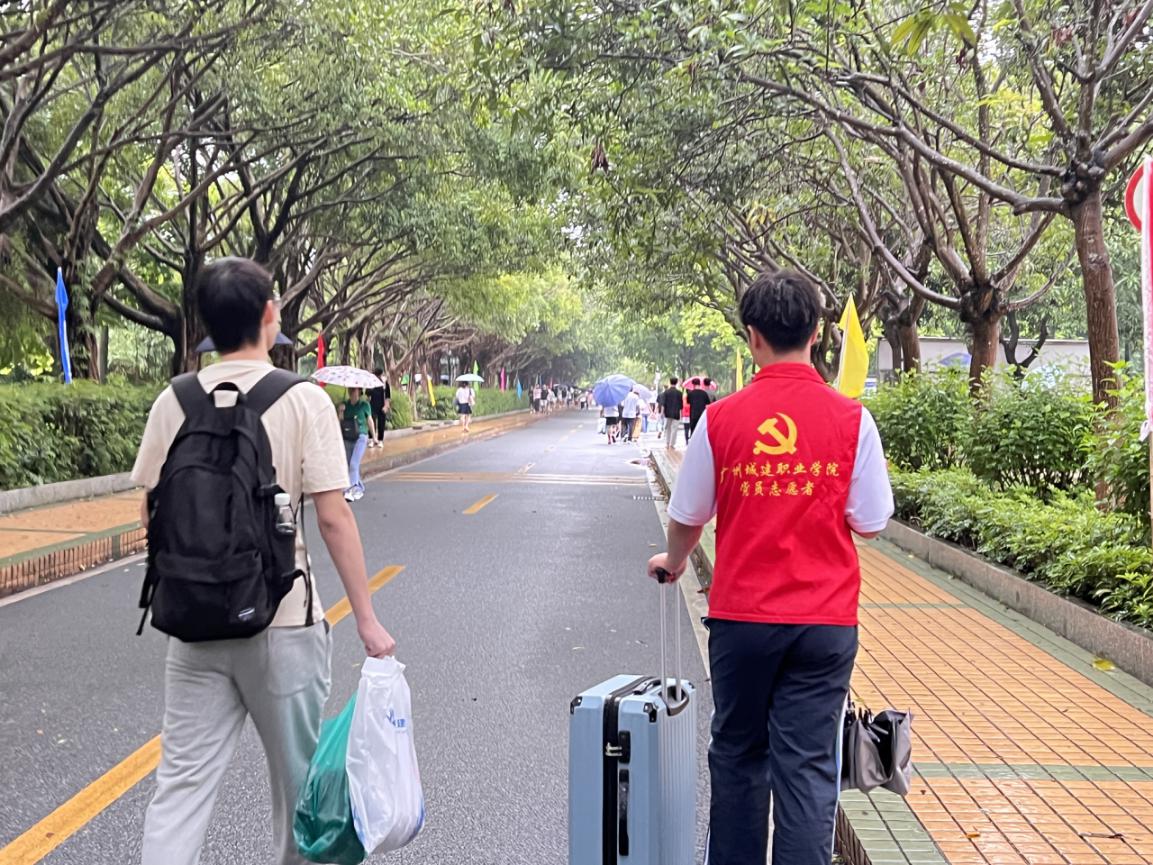 党员带领新生前往宿舍区