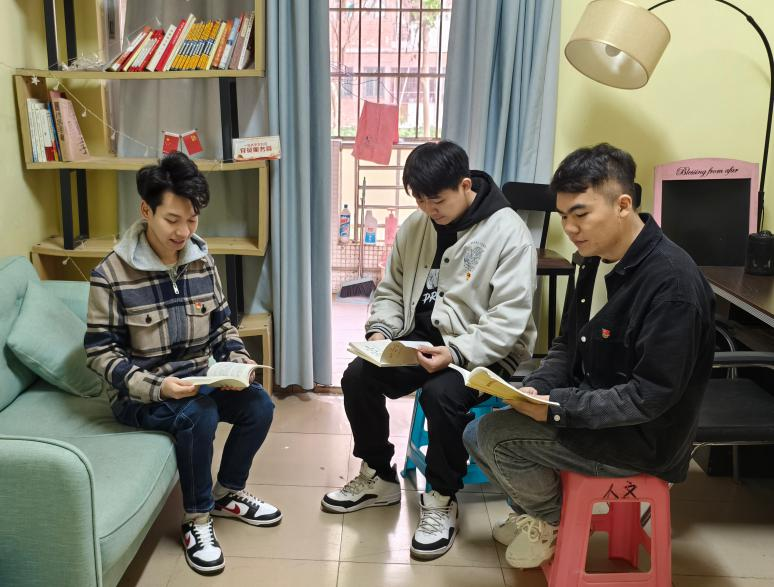 3月20日,人文学院学生第二党支部于四栋“一站式”学生社区组织开展学习贯彻习近平新时代中国特色社会主义思想专题学习暨党日活动,党支部书记李垚森、宣传委员刘俊、组织委员赖明君参加活动。