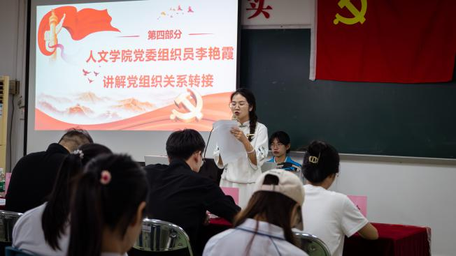 为做好毕业生党员教育工作,6月21日下午,我院党委在人文艺术楼513课室召开2024届毕业生党员教育大会。学院党委副书记彭聪、组织员李艳霞、学生第三党支部书记黄金坤、组织委员李苏玲、宣传委员李毅珊及全体2024届毕业生党员出席本次大会。
