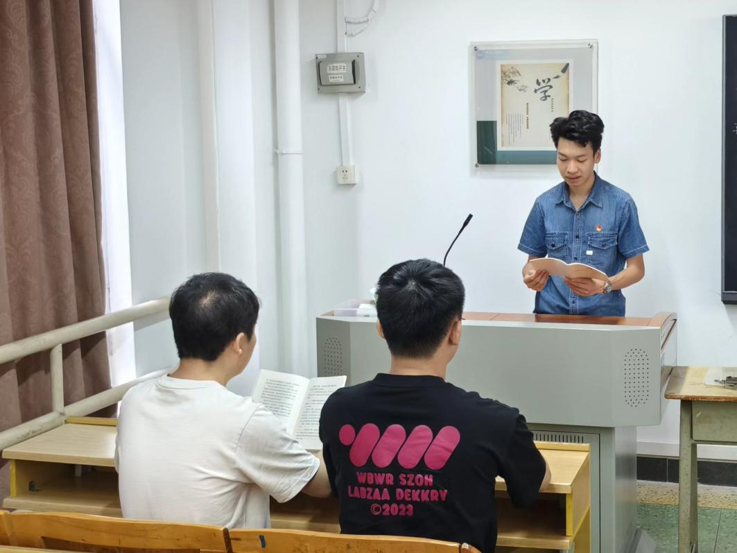为深入学习贯彻习近平新时代中国特色社会主义思想和党的二十大精神,认真学习《中国共产党纪律处分条例》,我院学生第二党支部于7月4日在人文艺术楼426课室开展七月党日活动暨党纪学习教育专题党课。我院学生第二党支部书记李垚森、组织委员赖明君、宣传委员刘俊参加活动。