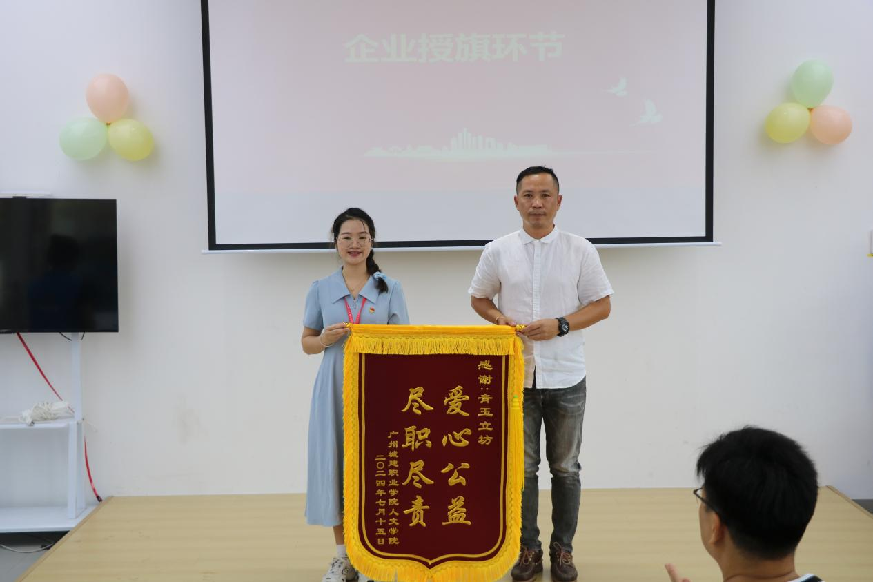 此次社会实践活动得到新港社区党支部以及青玉立坊的支持与帮助,实践内容丰富,形式多样,成果丰硕。实践团给企业青玉立坊授旗以表感谢,同时人文学院党委与港口镇新港社区党支部进行了党建结对共建签约和授牌。这标志着双方在党建引领下,充分发挥双方优势,相互合作,把理论与实践相结合,不断创新、拓宽领域,双方今后将开启更加紧密、深入的合作新篇章。
