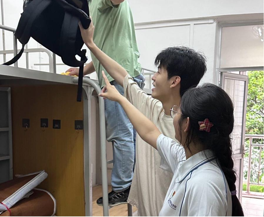 党员带领新生进入新宿舍