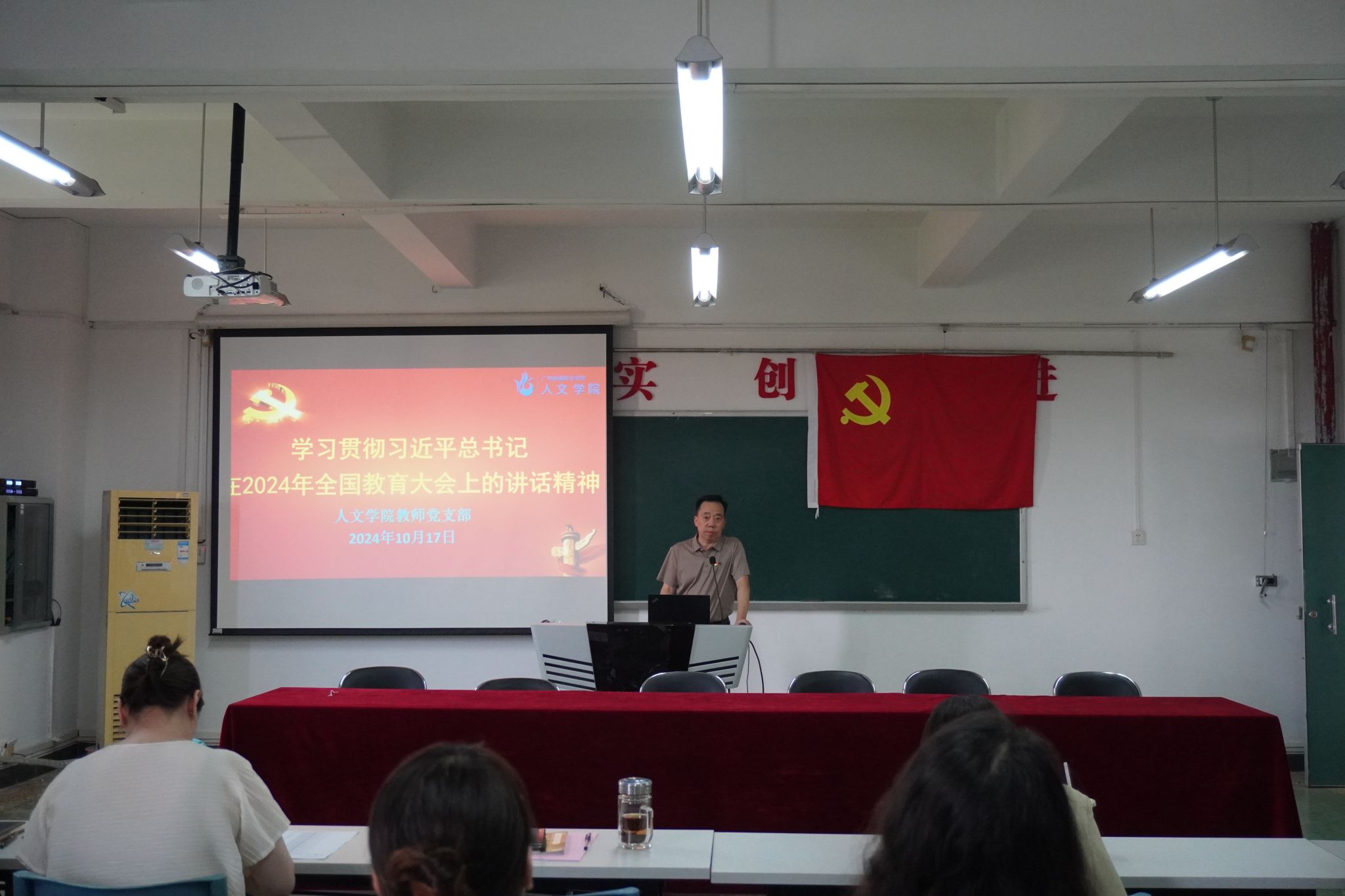 10月17日,为学习贯彻习近平总书记在全国教育大会的重要讲话精神,我院教师党支部在人文艺术楼513会议室组织全国教育大会精神学习会,学院党委书记鲁岩、全体党员教师和教师入党积极分子参与,会议由党支部书记李科锋主持。