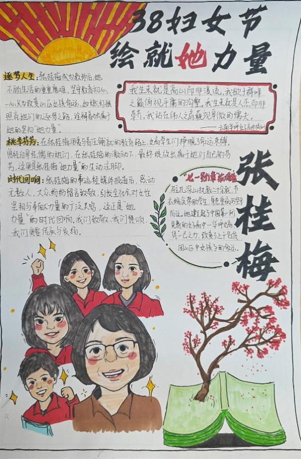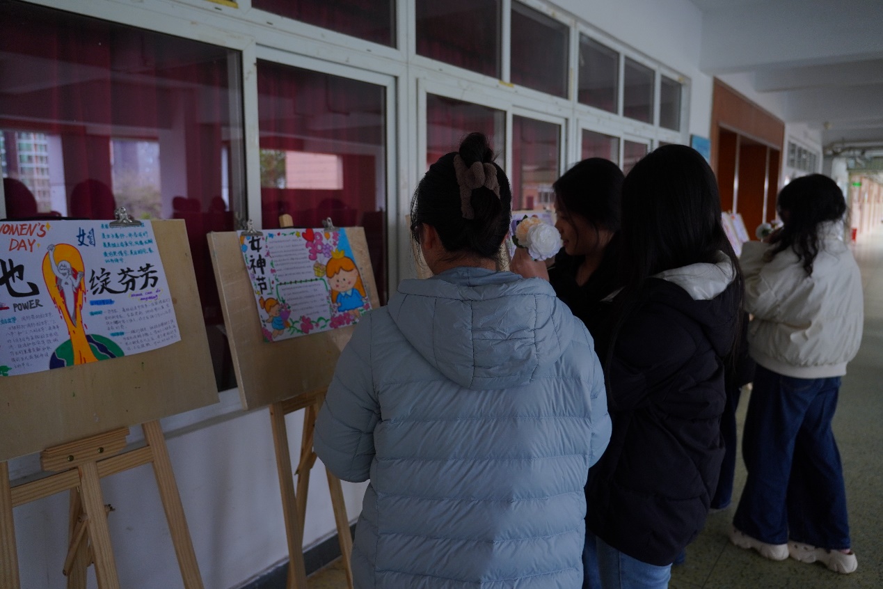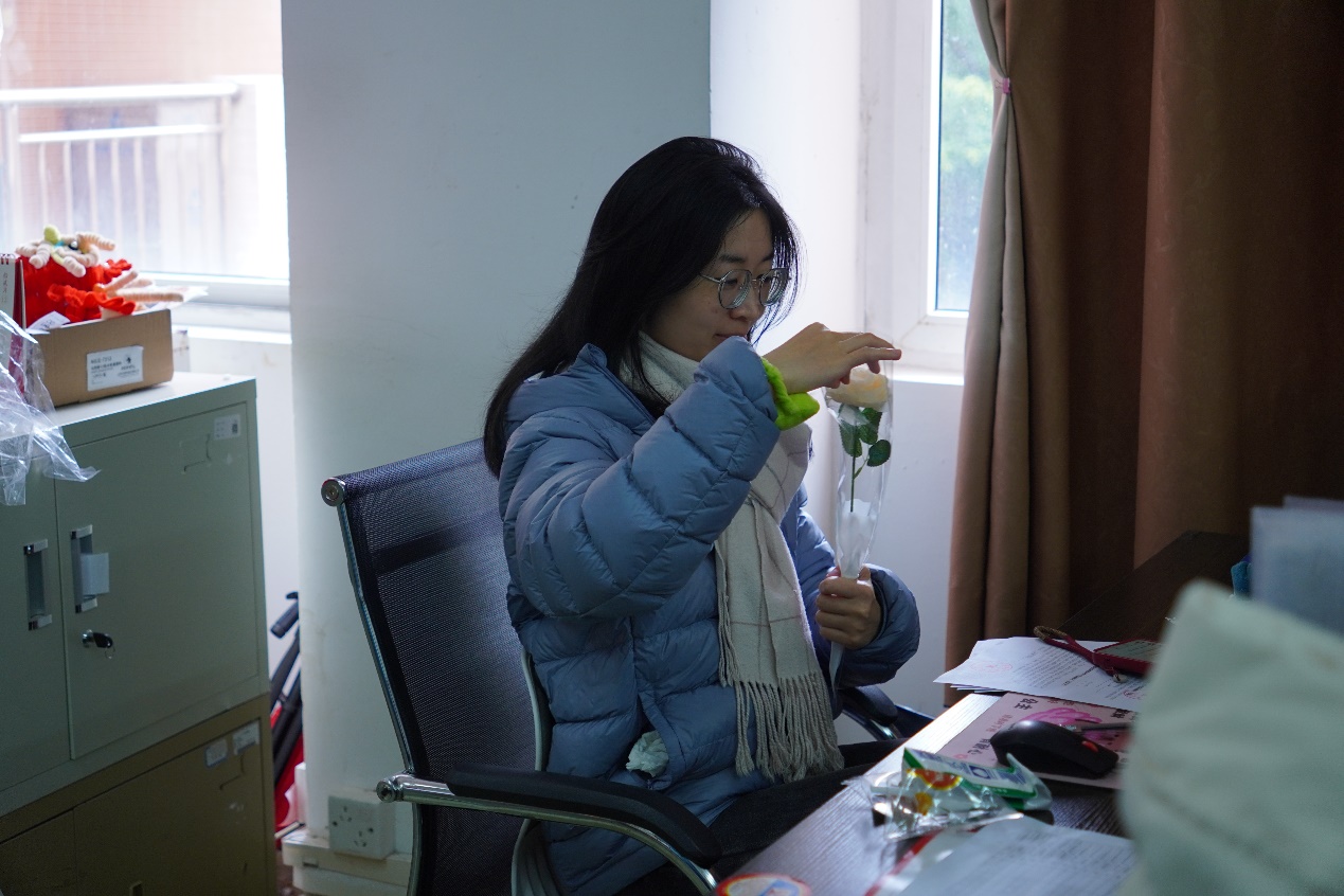 本次系列活动分为三个部分:一是以女性榜样故事为主题的征稿活动,稿件形式涵盖手抄海报和电子海报。学生们踊跃参与,积极投稿,用文字和图画充分表达对女性榜样的敬意与尊重,通过老师们的层层筛选,最终20余份优秀作品脱颖而出,并于活动当天在人文艺术楼四楼报告厅外进行展览。二是在人文艺术楼403课室开展“DIY花瓶制作”活动,在专业老师陈丹曦的指导下,参与的师生们发挥创意,用红色元素绘制花瓶,她们还上台展示了自己的作品,并分享了制作过程中的灵感与寓意。三是我院党建工作办公室学生干部们向我院女教职工献上鲜花和祝福,以感谢她们在工作中所做出的贡献,收到鲜花和祝福的女教职工们的脸上洋溢着灿烂的笑容。