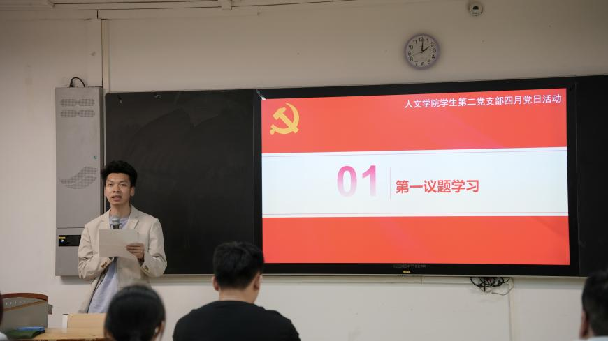 我院学生第二党支部于4月17日开展四月份主题党日活动。学生第二党支部书记李垚森、组织委员赖明君、宣传委员刘俊和全体学生预备党员参与此次活动。