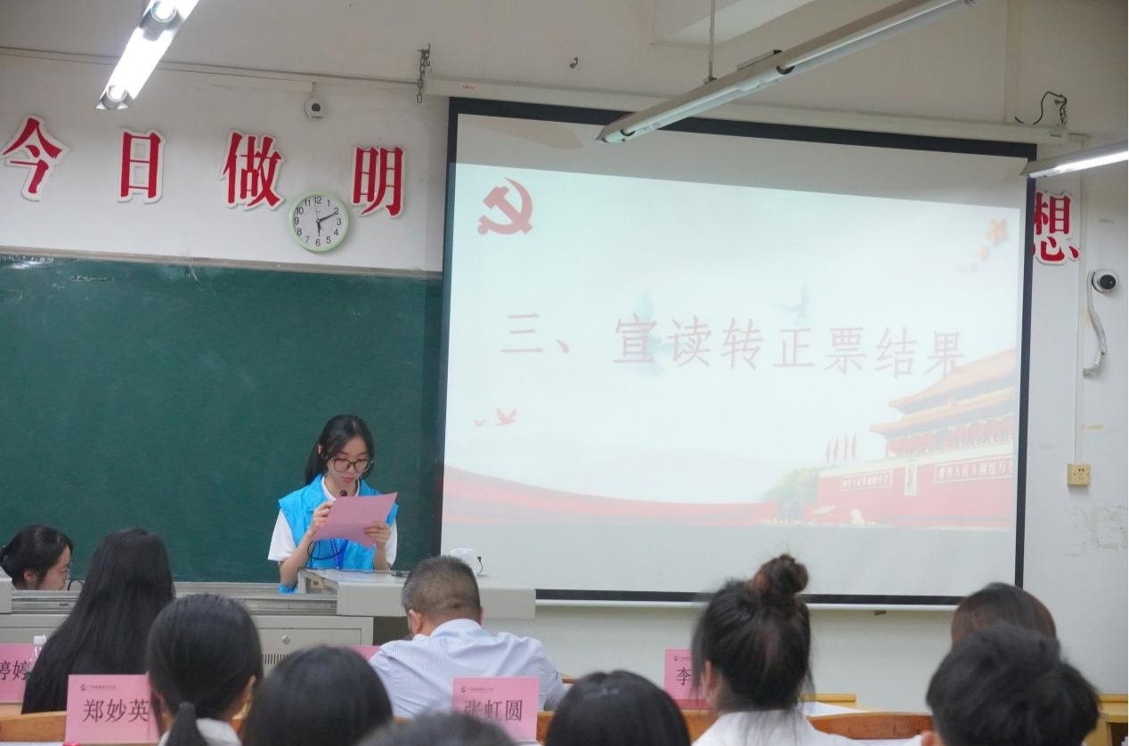 党支部书记梁婷婷同志总结强调,转正是党员政治生命的新起点,全体新党员要牢记身份、坚守初心,在学业中争当标兵,在实践中勇担重任,以行动擦亮党员底色,为党支部建设贡献青春力量。