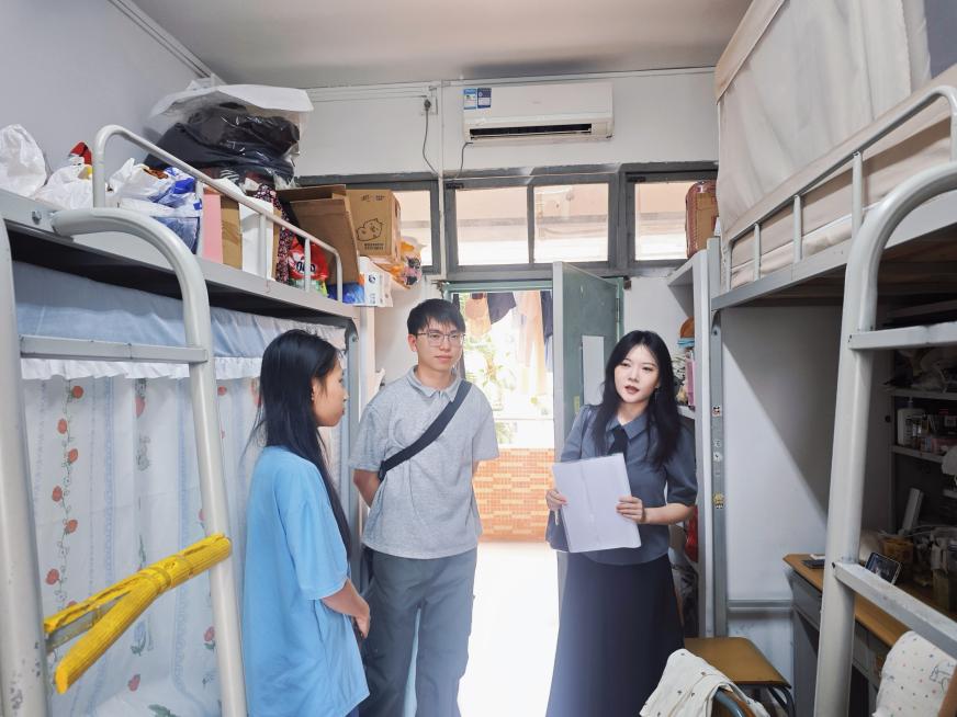 近日,我院24级年级组长黄金坤,班主任张昊昱老师和王镜涵老师走进学生宿舍,与学生进行深入交流沟通,为同学们送去关怀与温暖。