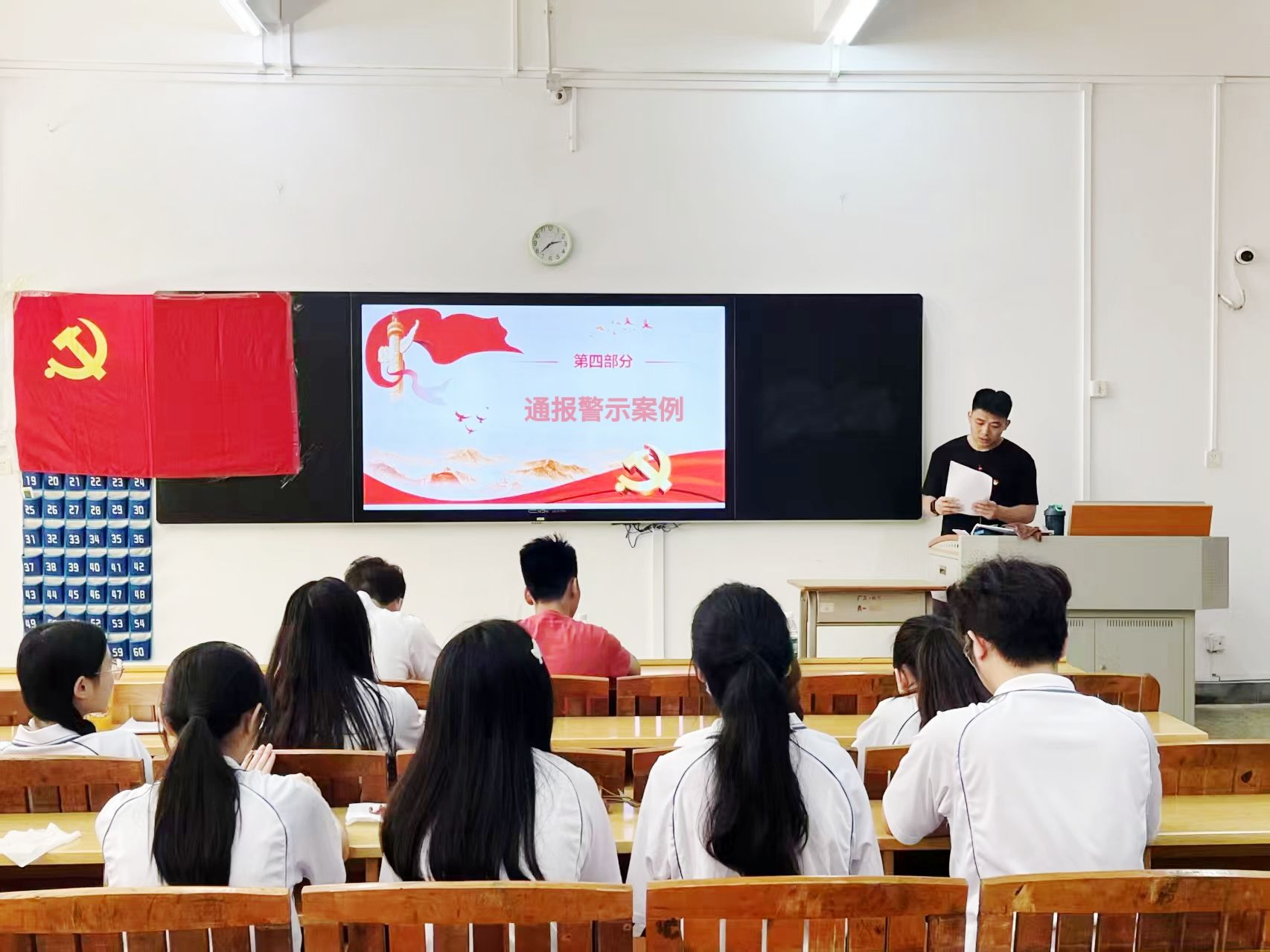 首先,李垚森带领全体党员学习《习近平关于加强党的作风建设论述摘编》的重要内容。通过学习,党员们对加强党的作风建设的重要性和紧迫性有了更为深刻的认识,进一步明确了作风建设在新时代党的建设中的关键地位。随后,赖明君向与会成员通报警示案例并且组织党支部成员学习讨论。党员们积极发言,深刻剖析案例中的问题,从中汲取教训,进一步强化了自身的纪律意识和规矩意识。在讨论过程中,学生预备党员们也踊跃分享了自己的学习心得,表达了对加强作风建设的重要性的深刻认同以及在今后学习和生活中严格要求自己的决心。