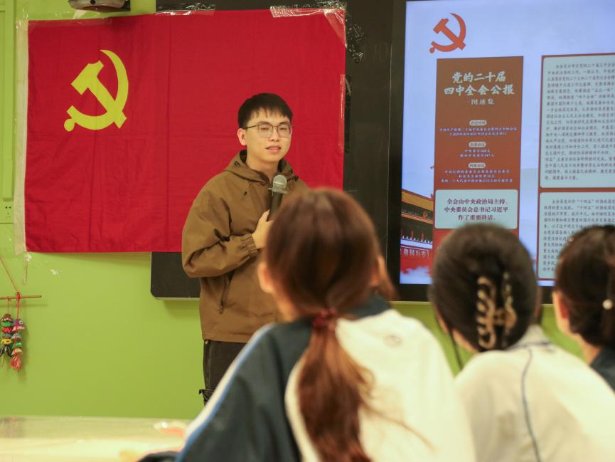 活动前,党支部书记黄金坤组织党员学生深入学习党的二十届四中全会精神,原原本本认真研读全会公报内容,重点解读全会提出的“统筹教育强国、科技强国、人才强国建设”战略部署,强调要将“健全高质量教育体系”要求融入日常育人实践,结合学院学风建设情况指出学业帮扶是落实全会精神、培养高素质技术技能人才的重要抓手,引导党员深刻认识自身在“青年成长与强国担当”中的使命担当。