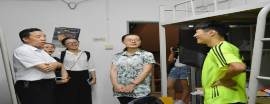 走访中,周晖副校长亲切地询问新生们到校后的感受及生活需求,鼓励他们要把学校当成自己的家,快乐学习,愉快生活;并对人文学院为新生精心布置的、充满人文关怀的宿舍文化氛围给予了高度赞赏。