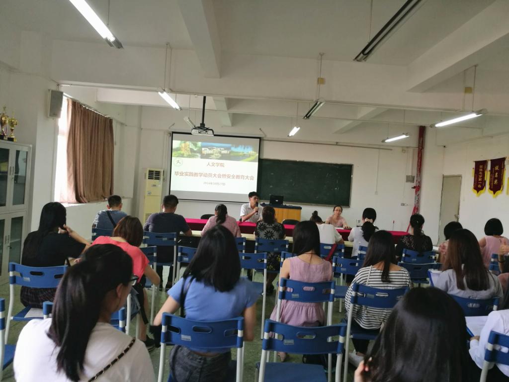 10月27日下午,人文学院在人文艺术楼513室召开毕业实践动员大会暨安全教育大会。人文学院副院长徐国莉、辅导员肖小嫣、全体指导老师和毕业生出席了会议。会议由人文学院办公室主任李科锋主持。