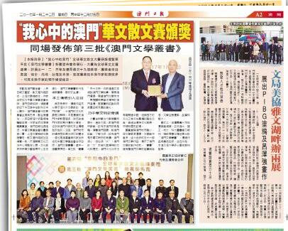 1月22日《澳门日报》2版头条刊发的颁奖消息