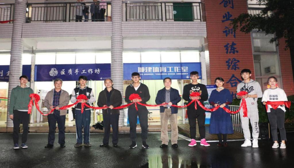 3月22日晚,人文学院体育运营与管理专业学生自主创业项目“城建体育工作室”揭牌仪式在创训楼举行。校长刘国生、校管会秘书曾庆鸿等领导在人文学院院长鲁言、副院长孙欢欢的陪同下,与专业教师和学生共同参加了揭牌剪彩仪式。