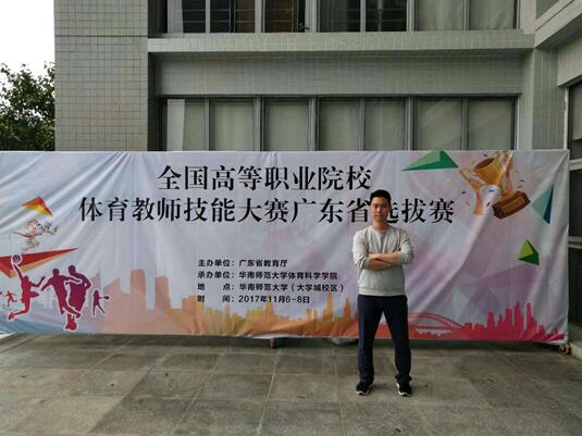 11月6-8日,由广东省教育厅主办的全国高等职业院校体育教师技能大赛广东省选拔赛在华南师范大学(大学城校区)举行,来自全省高职院校共130多名体育教师报名参赛。我校人文学院易木寿老师代表学校参加青年组比赛并荣获一等奖晋级全国赛。