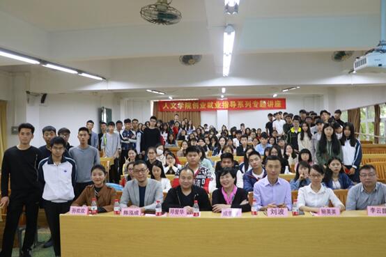 11月16日下午,人文学院在人文艺术楼1205室举办创业就业主题讲座,讲座邀请到广州市大学生社会适应力研创中心企业负责人为学生作以“自媒体新营销”为主题的就业讲座。参加讲座的领导嘉宾有大学生社会适应力研创中心理事长成雪峰,大学生社会适应力研创中心常务副理事长、禾堂文化CEO邓爱华,大学生社会适应力研创中心副理事长,高盛文化董事长刘波,大学生社会适应力研创中心副理事长李云昆,大学生社会适应力研创中心副秘书长邓华华,美食旅游自媒体大咖、资深媒体策划人昭son,中金恒通集团总裁,互联网金融专家陈泓成,大学生社会适应力研创中心秘书阳正,高盛文化董事长助理媛媛,人文学院副院长孙欢欢等,活动还吸引了人文学院16、17级学生合计200多人倾听了本次大会。