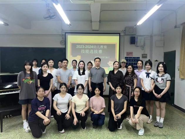 为提升学前教育专业学生的幼儿教育教学技能,选拔参赛队员集训参加2024年全省职业院校学生技能竞赛,5月9日,学前教研室在人文艺术楼4楼实训室举办学生技能大赛选拔赛,学院院长鲁岩,副院长王婧,学前教研室主任苏一波、副主任李元庆以及部分教师代表出席并担任本次大赛评委。