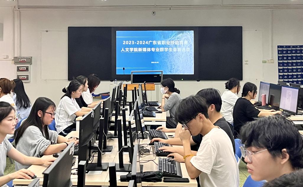 为做好2024年广东省职业院校学生技能竞赛备赛工作,4月25日下午,我院新媒体专业群教研部在人文艺术楼4楼实训室举办学生专业技能大赛参赛选手测试选拔活动,学院院长鲁岩、副院长王婧、新媒体专业群教研部部长沈亚圆、策划教研室主任李锦洪、新闻教研室主任邓雨晴等出席了本次活动。