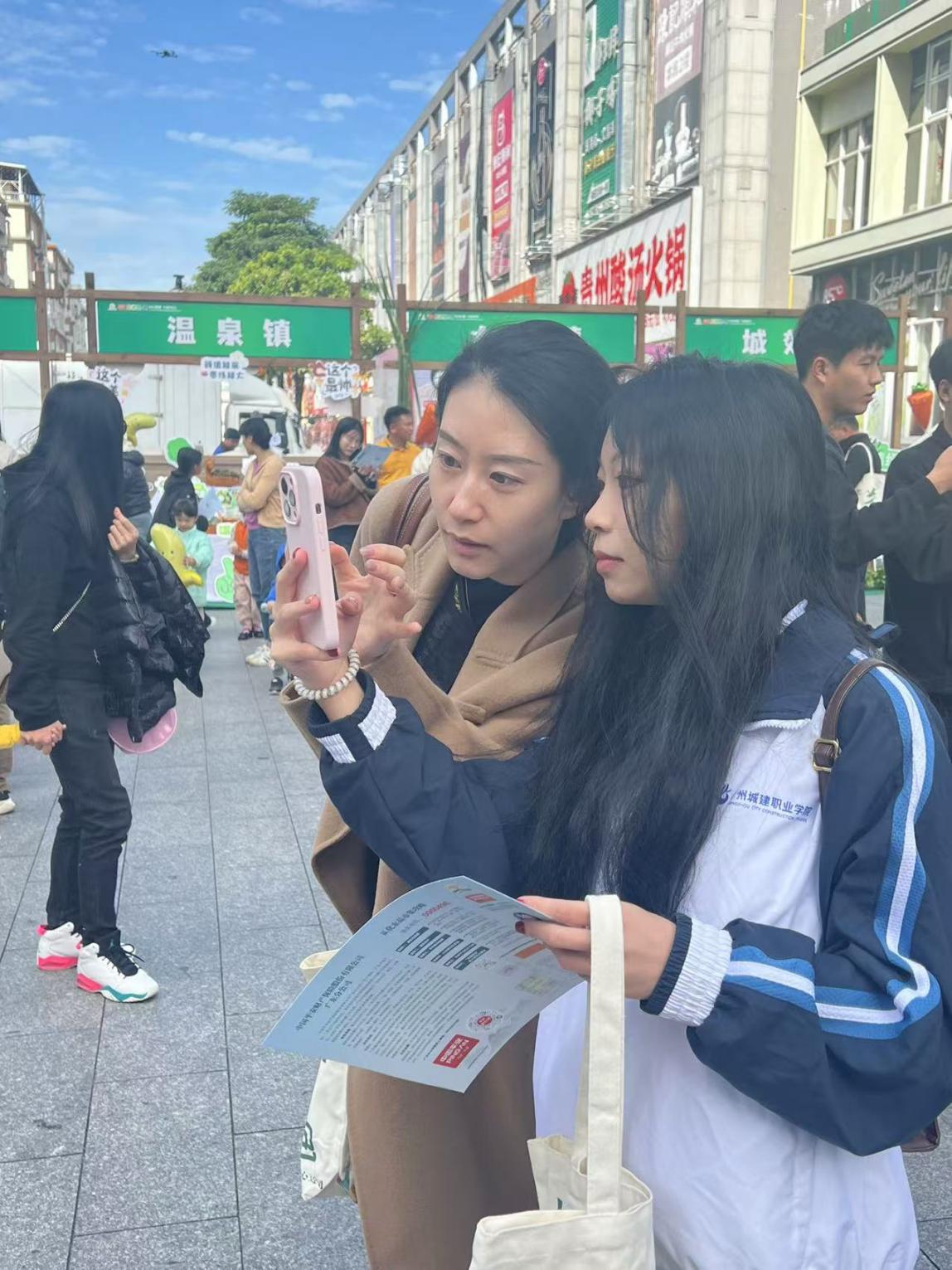 在活动前,孙菲依托《网络直播应用》课程,注重“赛课项”一体化联动,以其丰富经验和独到见解耐心地指导学生“如何做好直播准备”。她强调,直播前的规划至关重要,包括直播内容设计、户外直播话术、与线上观众互动注意事项等内容,并对直播过程突发事件处理提出建议和意见,为学生顺利开展直播宣传打下了坚实的基础。活动当天,她还进行现场教学,在直播中手把手指导学生一系列实用的直播互动技巧,如巧妙提问、趣味抽奖等,有效激发了观众参与活动热情。