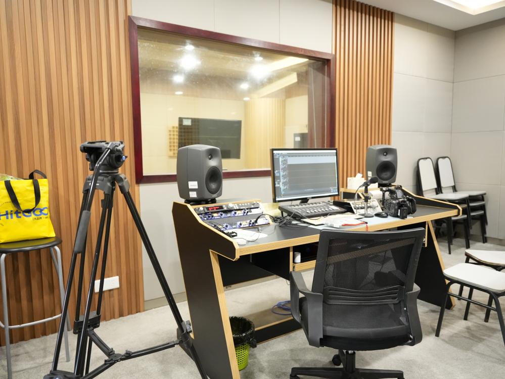 会后,鲁岩院长一行在陈宇哲院长的陪同下参观了艺术与新媒体学院的超高清融媒体实训中心实训室、全景声录音棚、调色实训室、数字影棚、书法实训室等教学及实训场地,实地了解了艺术与新媒体学院实训室建设情况。