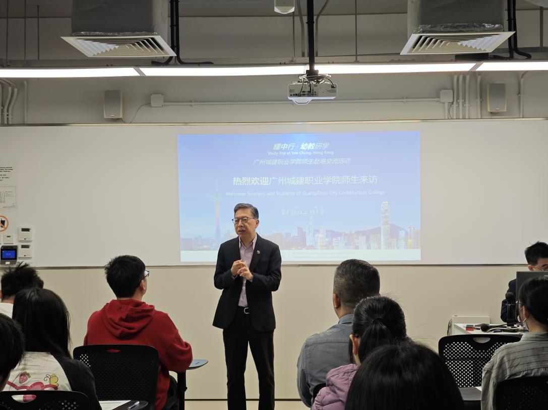 在欢迎仪式上,耀中幼教学院副校长林文全博士对我院师生的到来表示热烈的欢迎,鼓励同学们要珍惜这次难得的研学机会,亲身体验香港学前教育教学模式,扩宽专业国际视野,为未来的职业发展打下坚实的基础。同时,研学团还聆听了耀中幼教学院内地发展部副主任韩浩、教师代表潘瑞锋、李乐华等人对学校的办学历史、师资力量、课程设置、教学模式、办学成果以及香港幼儿教育政策、师资培养政策、幼儿教师发展状况等情况的介绍,让学生对耀中幼教学院和香港幼儿教育发展现状有了初步了解。