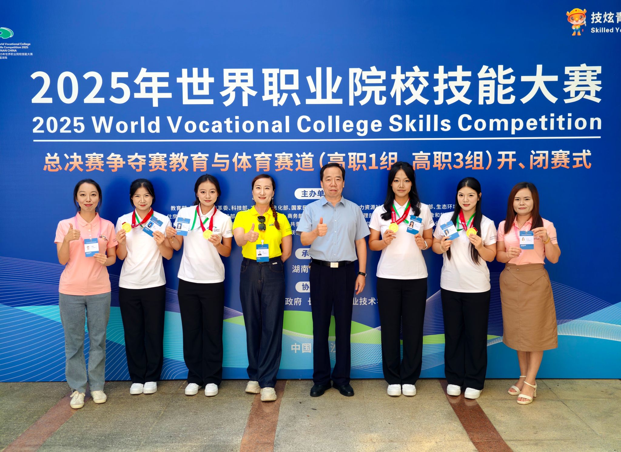 8月31日,2025年世界职业院校技能大赛总决赛争夺赛“教育与体育赛道”(高职组)在长沙落幕,共有来自全国职业院校的228支队伍同场竞技。由王婧副院长领队,学前教育教研室苏一波、杨思敏老师指导,向裕丹、何宝珠、李绮祺、李河婧四位同学组成的参赛队代表我校出征。比赛中,参赛选手沉着应对、稳定发挥,展现出扎实的专业素养和良好的综合素质,经过激烈角逐,最终脱颖而出以小组第一的成绩斩获本赛道广东省唯一金奖。经过大赛评委对所有金奖项目进行小组复评和赛道二次复评,我院参赛团队获得晋级总决赛下一阶段排位赛资格(该赛道共有2个团队晋级),实现我校首次晋级排位赛的历史性突破。