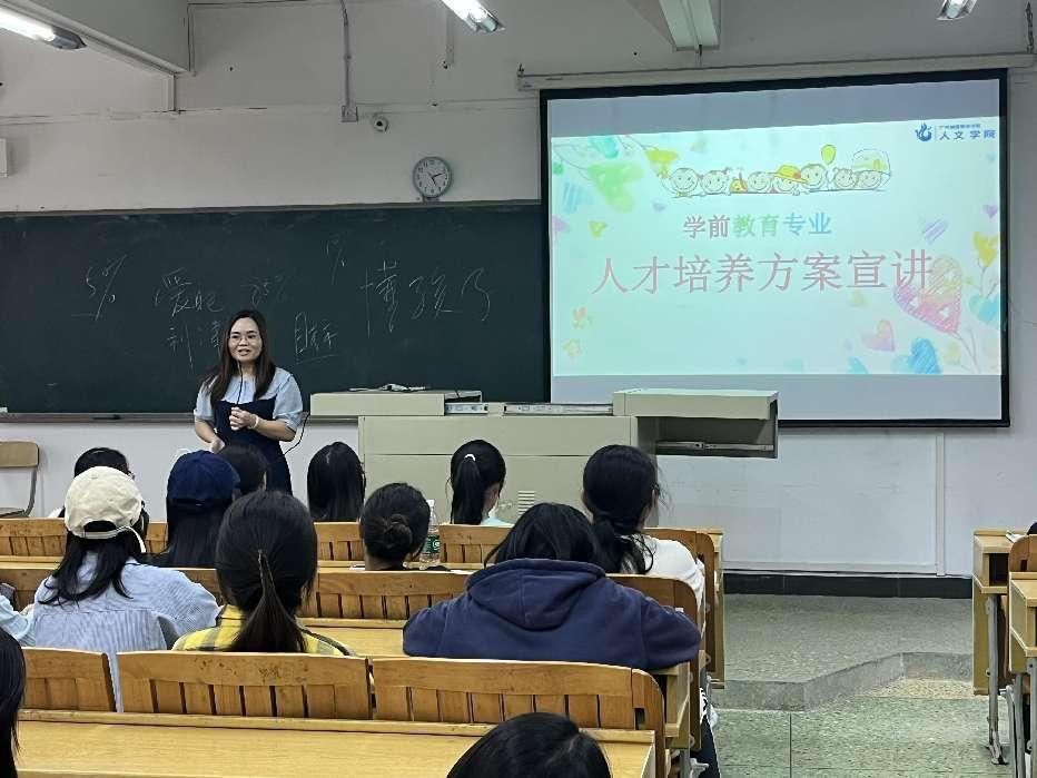 在专业介绍与人才培养方案宣讲环节,学前教育教研室主任苏一波、专任教师谢惠玲分别围绕学前教育专业的培养目标、课程体系架构、专兼职师资配置、校企合作成果及人才培养成效等方面的内容展开。通过呈现“理论教学+技能训练+实践浸润”三维一体的培养模式,详细解读了如何通过模块化课程实现从教育理论到保教实践的能力转化。同时还介绍了学生校外实践基地建设情况以及近年来学生在省级技能大赛、创新创业大赛中取得的优异成绩,充分展现了专业建设的丰硕成果。