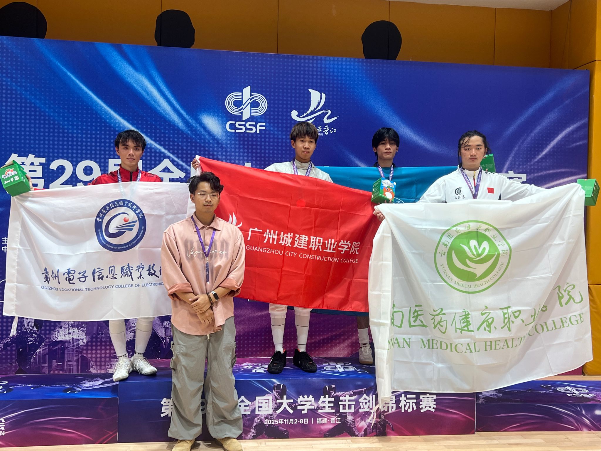 国内大学生击剑顶级赛事——第29届全国大学生击剑锦标赛于11月2日至3日在福州大学晋江校区金龙体育馆开赛,由我院体育教师魏志华担任教练,2025级休闲体育专业学生马浚钧表现卓越,勇夺男子花剑个人(乙组)冠军,这是我校首次获得全国击剑锦标赛冠军,取得体育专业学子参加国家级竞赛的新突破。