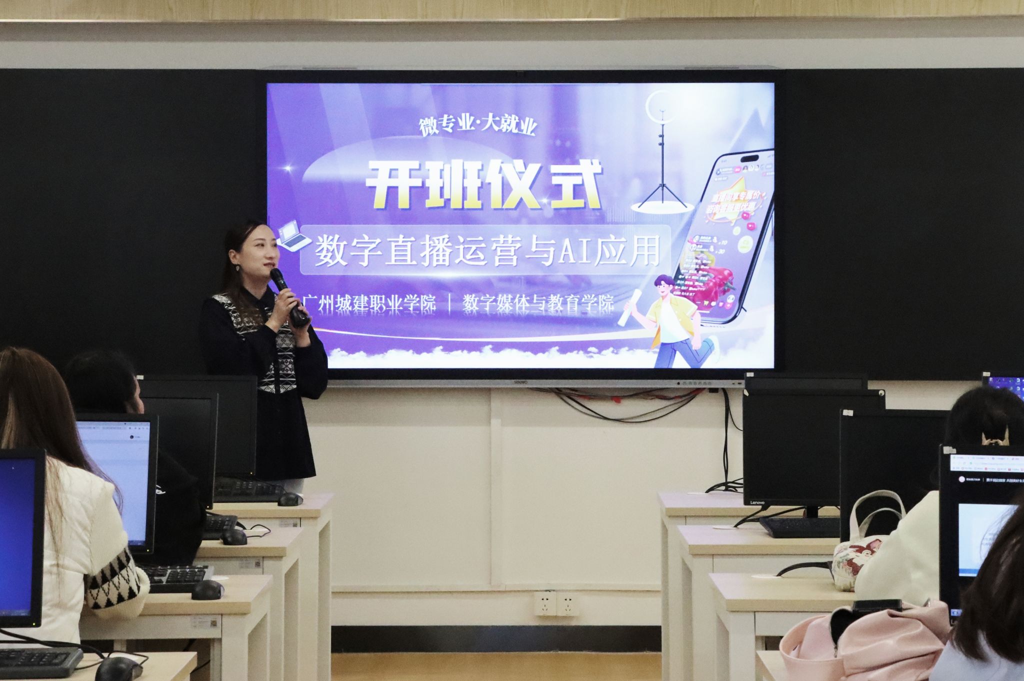 11月3日,我院“数字直播运营与AI应用”微专业正式开班。学院院长鲁岩,副院长王婧,新媒体教研部部长李锦洪、副主任王境涵及全体微专业教师以及首批微专业学生共同开启数字直播运营与AI应用的融合学习之旅。