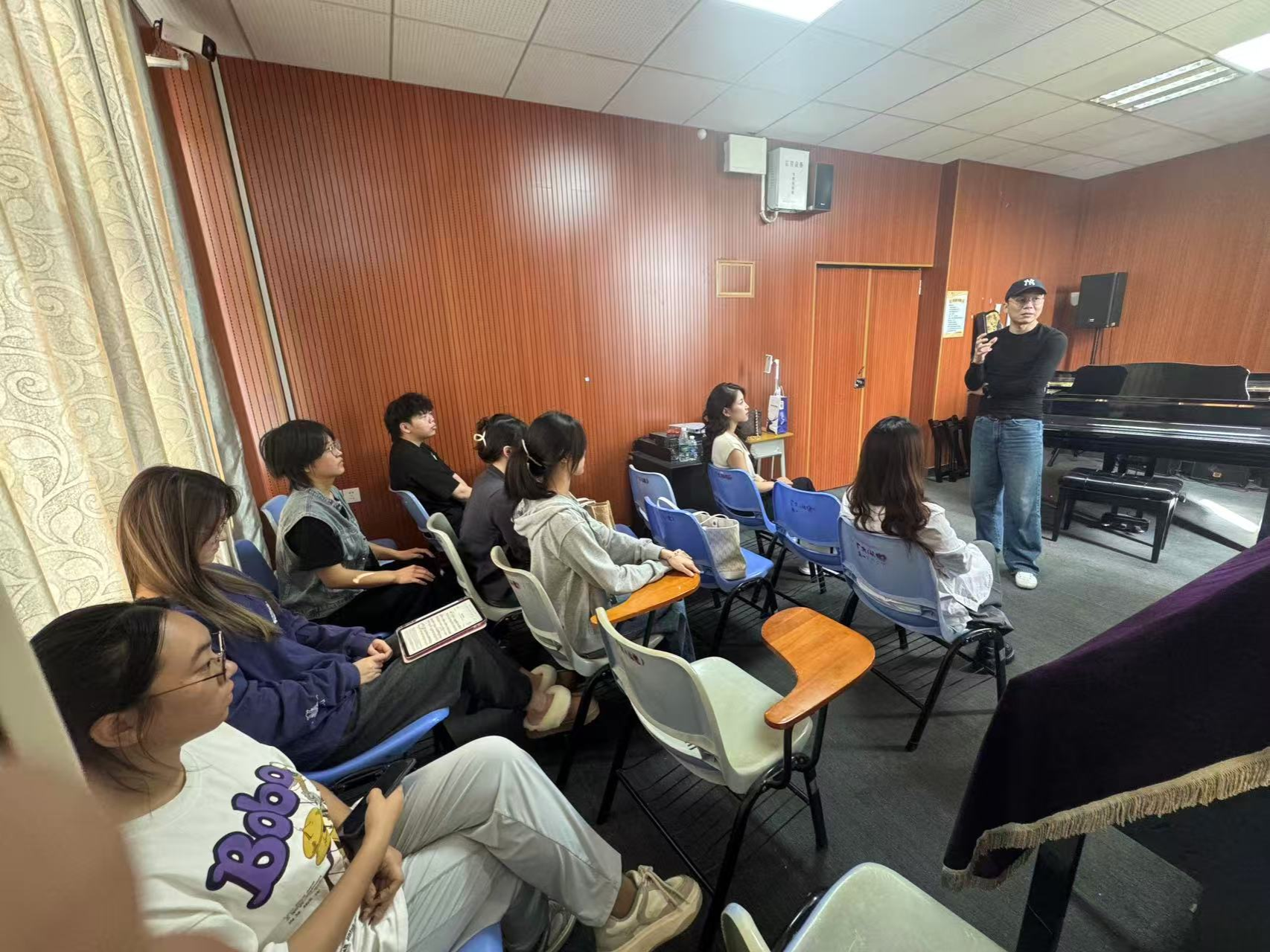 近日,我院音乐表演教研室在创训楼实训室举办2025-2026学年学生技能大赛选拔工作,音乐表演教研室主任黄彤,学生技能大赛指导老师郭金铭、段江旻、曾滢和12名学生参加了本次活动。