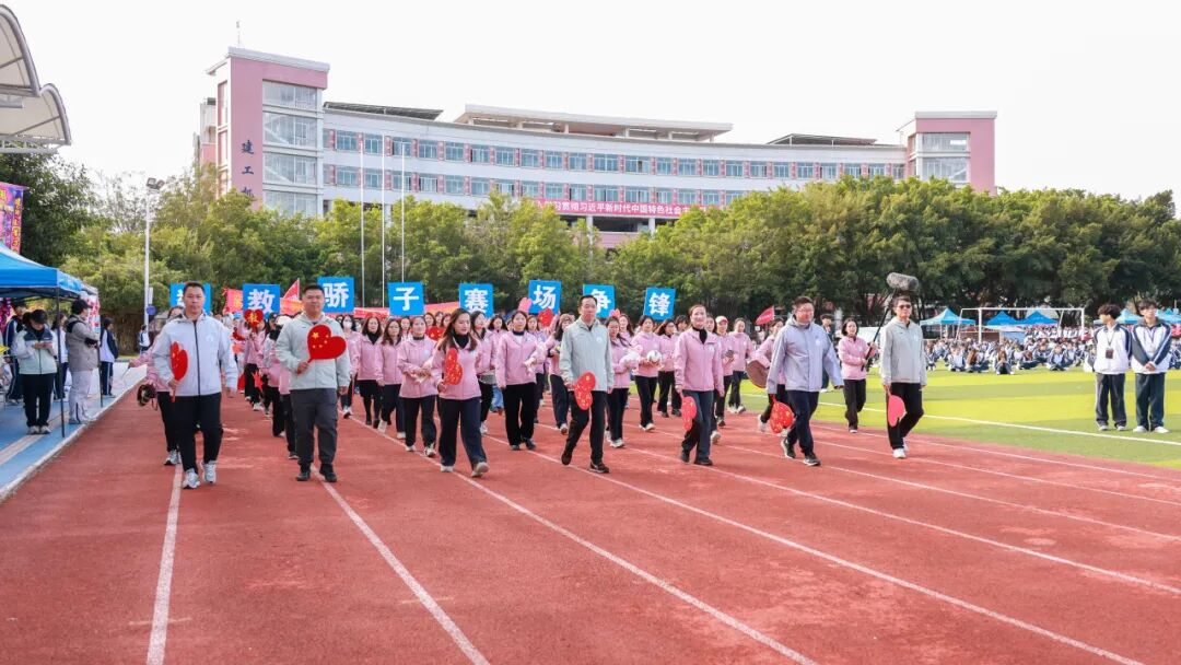 运动会伊始,在激昂的运动员进行曲中,我院的教职工方阵迈着整齐的步伐、高呼着嘹亮的口号步入会场。大家精神饱满,笑容自信,精心设计的队形、多彩的道具以及响亮的口号,彰显了新学院融合后的人文底蕴与体育活力。高举“新学院新征程,同心同行创辉煌”的横幅,向全校师生传递出我们“团结一心、开拓进取”的精神风貌。这场精彩的入场式,为学院接下来的优异表现奏响了高昂的序曲。