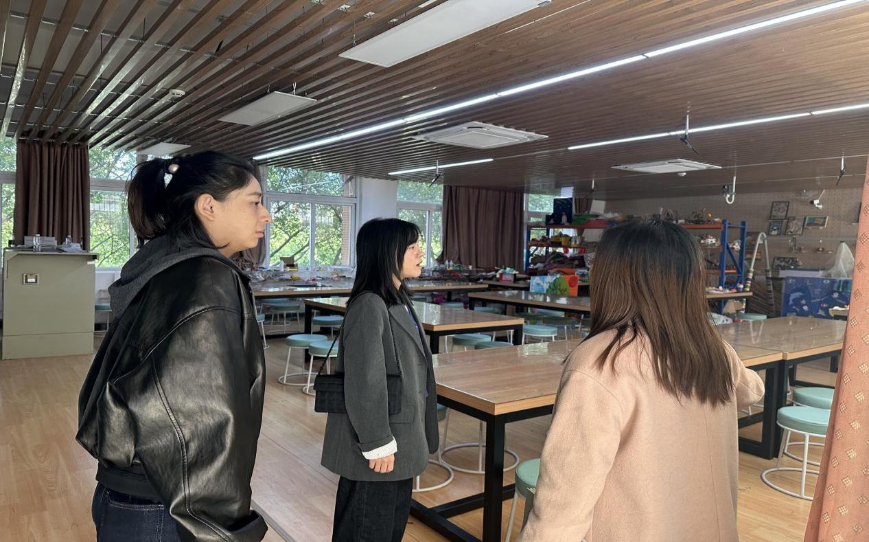 座谈会后,广西幼专学前教育学院一行参观了我院蒙台梭利实验室、手工环创实训室、幼儿照护实训室等教学实践场所。参观过程中,王婧介绍了各实训室的建设理念、功能布局、设备配置及在实践教学中的应用情况。