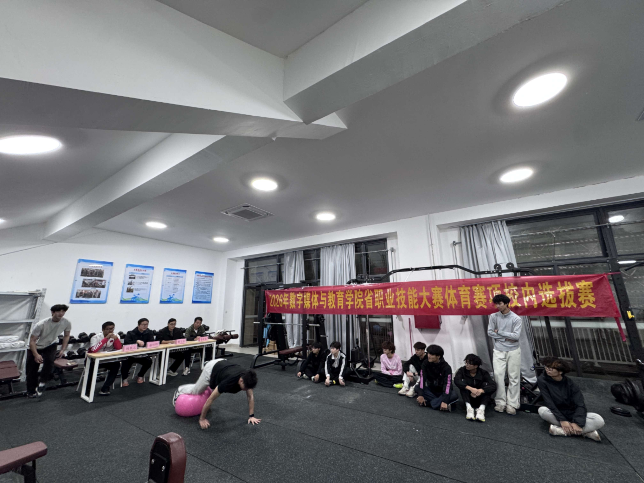 为对接2026年广东省职业院校技能大赛,遴选优秀选手代表学校出征,我院于12月09日在清远校区健身房成功举办“健身指导”赛项校内选拔赛,赛事严格对照省赛标准执行,共有10名同学经过初选参与选拔赛,评委组由体育专业教研室主任杨镞江以及专任教师及组成。