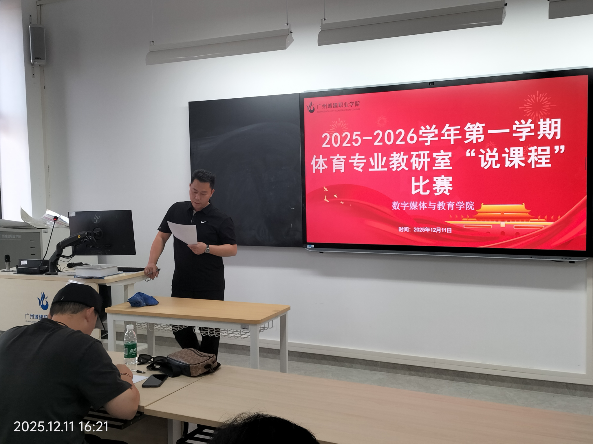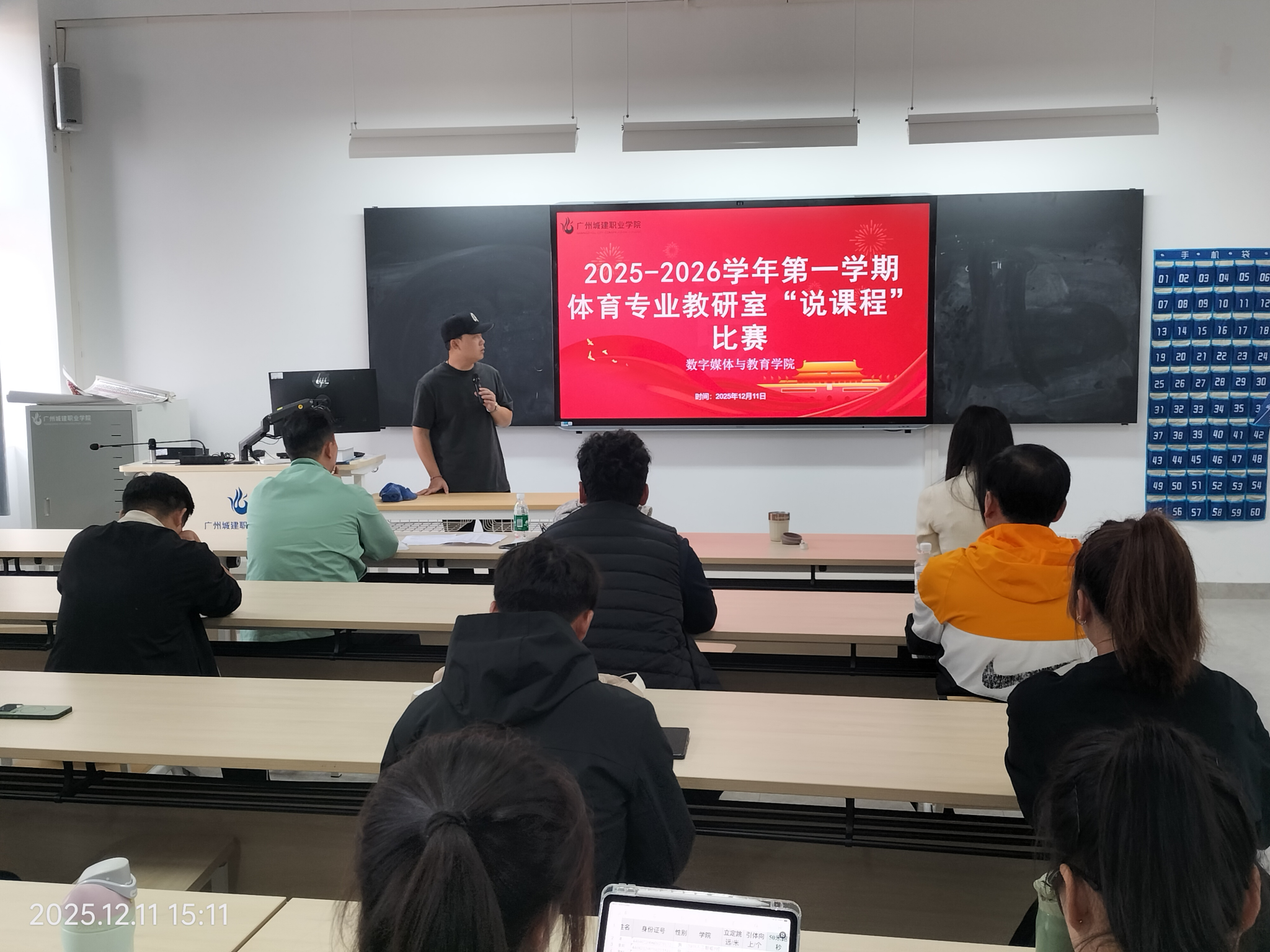 为深入贯彻国家职业教育改革相关文件精神,强化课程育人功能,提升教师课程设计与实施能力,12月11日下午,我院体育专业教研室在清远校区10号楼综合实训室开展“说课程”比赛活动,学院副院长易木寿、专业教研室主任杨镞江以及体育专业教研室全体教师参与活动。